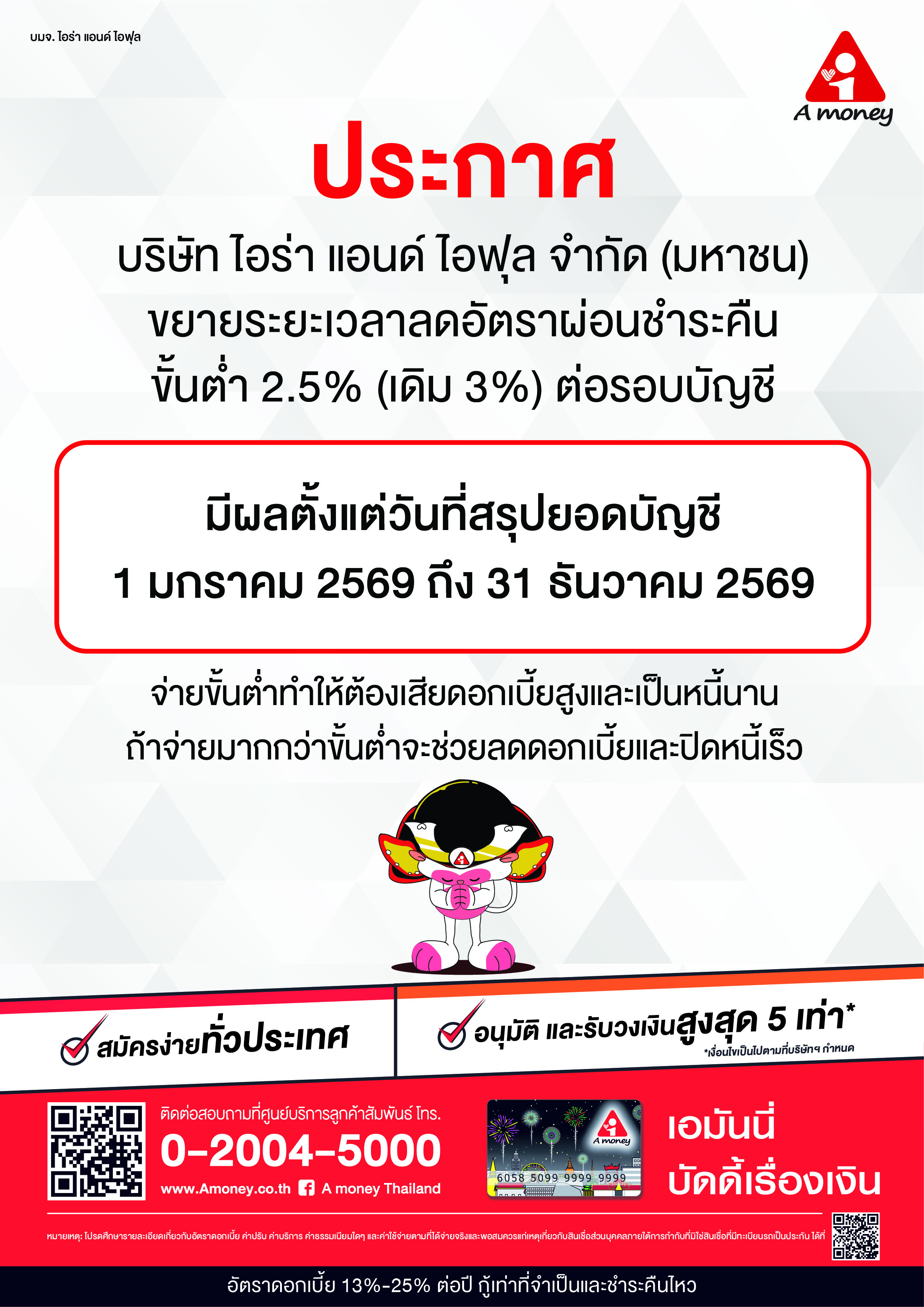 หากท่านต้องการติดตามหรือรับทราบข้อมูลข่าวสารบริการ/ผลิตภัณฑ์/โปรโมชั่นจากบริษัท ไอร่า แอนด์ ไอฟุล จำกัด (มหาชน) (บริษัทฯ) ทั้งนี้ เพื่อให้เป็นไปตามความต้องการดังกล่าวบริษัทฯ ขออนุญาตเก็บและใช้ข้อมูล Cookie ของท่านด้วย (อ่านข้อมูลเพิ่มเติมได้ที่ Cookies Notice)