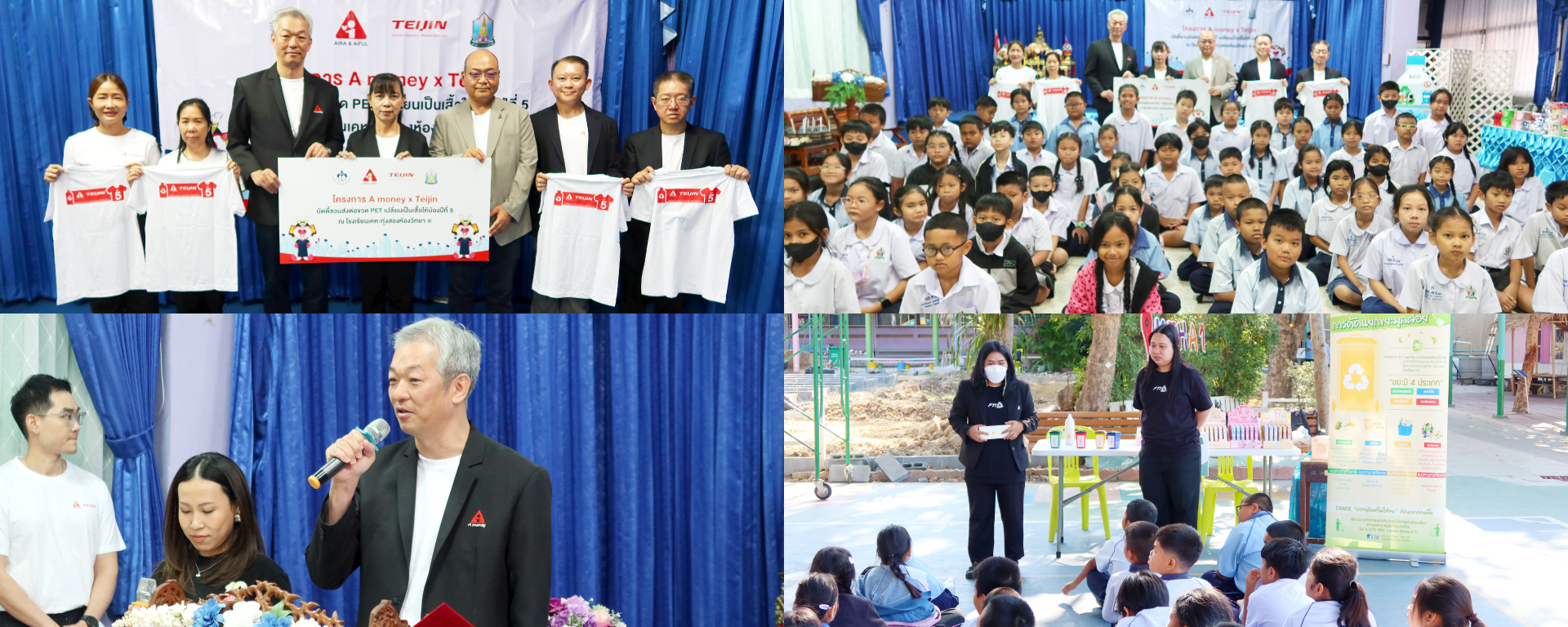 นายคิมิฮิโระ โอโมริ ประธานเจ้าหน้าที่บริหาร บริษัท ไอร่า แอนด์ ไอฟุล จำกัด (มหาชน) พร้อมด้วย นายคาซูชิเกะ อาซาดะ ประธานบริษัท เทยิน โพลีเอสเตอร์ จำกัด ร่วมเปิดตัวโครงการ A money x Teijin บัดดี้ชวนส่งต่อขวด PET เปลี่ยนเป็นเสื้อให้น้อง ปีที่ 5” โดยมี นางณาตยา บุญเสริม  ผู้อำนวยการโรงเรียนเคหะทุ่งสองห้องวิทยา 1 รับมอบเสื้อที่ผลิตจากขวด PET พร้อมนำทีมเยาวชนร่วมกิจกรรมสร้างความตระหนักรู้ในเรื่องการคัดแยกขยะอย่างถูกวิธี เพื่อส่งเสริมการรีไซเคิลที่มีประสิทธิภาพ มุ่งเน้นการใช้ทรัพยากรอย่างคุ้มค่า และร่วมเป็นส่วนหนึ่งในการดูแลรักษาสิ่งแวดล้อมอย่างยั่งยืน ณ โรงเรียนเคหะทุ่งสองห้องวิทยา 1 กรุงเทพฯ