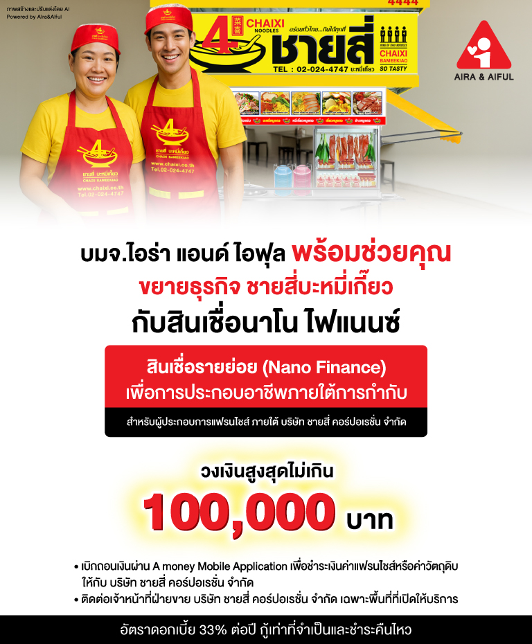 บมจ.ไอร่า แอนด์ ไอฟุล พร้อมช่วยคุณขยายธุรกิจ ชายสี่บะหมี่เกี๊ยว กับสินเชื่อนาโน ไฟแนนซ์ สินเชื่อรายย่อย (Nano Finance) เพื่อการประกอบอาชีพภายใต้การกำกับ