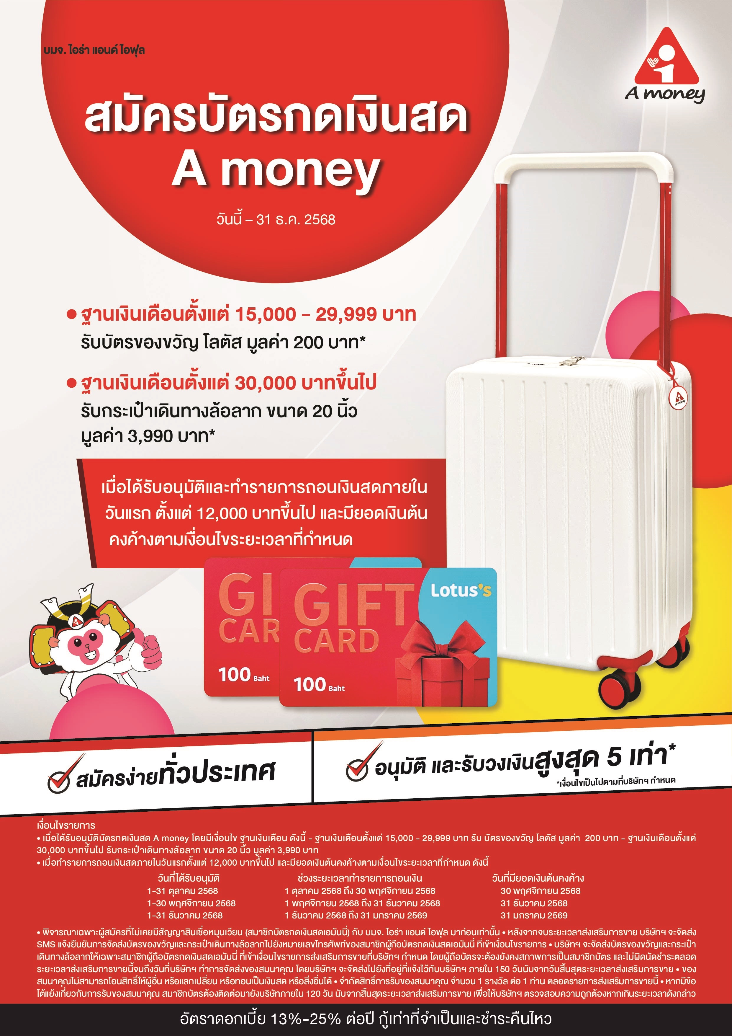 สิทธิพิเศษสำหรับผู้ที่ได้รับอนุมัติบัตรกดเงินสด A money ที่มีฐานเงินเดือนตั้งแต่ 15,000 บาทขึ้นไป